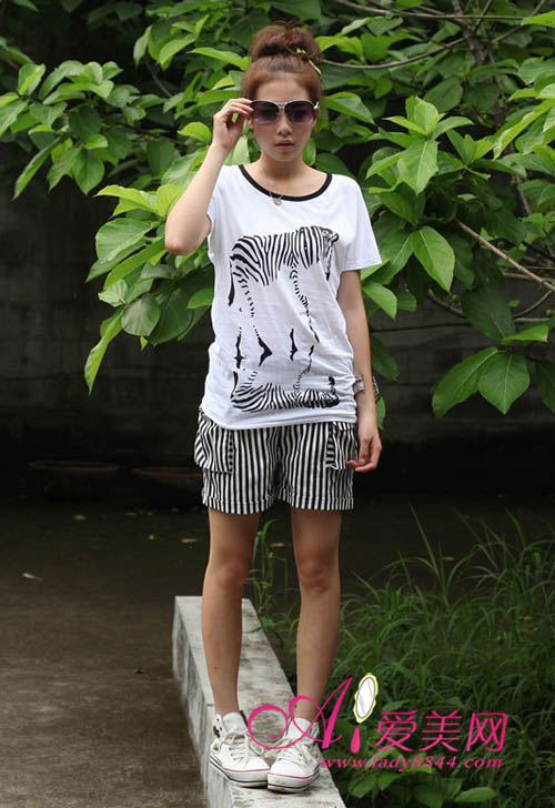 T恤+热裤休闲套装,只有黑和白的颜色设计,没有多余的装饰,却不乏单调,它就是有一股不具名的感染力。