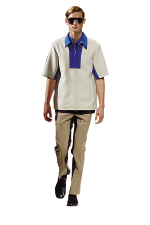 Prada终归是要制造话题的品牌,其2013春夏系列男装也在此次米兰男装周上发布。Miuccia Prada终于抛弃了延续几季的彩色印花,换上了简单深沉的颜色。2013春夏男装走运动和极简路线,整个系列多以色块拼接的表现手法完成,其用色和剪裁似乎糅合了过往的Hermes甚至Celine女装的风格。一部分早春女装夹杂其间展示,有说是女模展示男装,那是因为这个系列的确够中性。