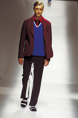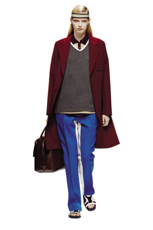 除了同2012春夏的花花世界划清界限,Prada 2013春夏男装同其2012秋冬男装还是有延续的,Prada 2012秋冬男装秀场特邀大牌影星诠释皇家风范,2012秋冬广告大片也邀请了四大影帝参与拍摄;至2013春夏Prada男装回归简洁,但秀场上一些80年代老牌超模的优雅回归像是秀场“隐埋”的意外惊喜。顶着一头银发的John Pearson现身T台,这位现年46岁的男模,是上世纪80年代炙手可热的男模之一,最能说明他当时地位的是John作为唯一男主角与同期火热超模辛迪·克劳馥、琳达·伊万格丽斯塔、克里斯蒂·特林顿、纳奥米·坎贝尔出演George Michael著名的“Freedom 90”音乐录影带。他的再度现身是否意味着他将以模特身份回归了呢?