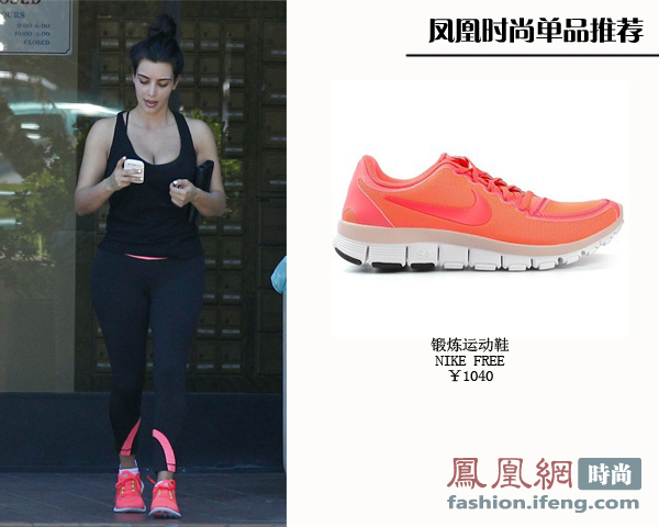 荧光色运动鞋炫目抢镜,整身的重点就这双运动鞋,简单大方,夺人眼球。
