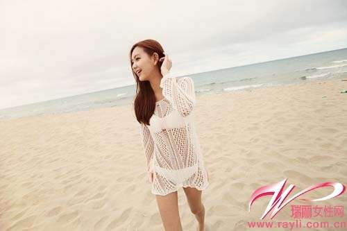 白色编织长袖衫搭配同色Bikini