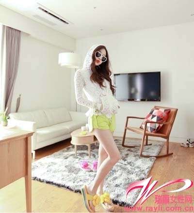 编织连帽衫搭配荧光色运动热裤