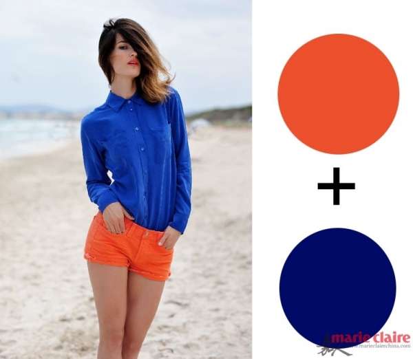 橘色+宝蓝色