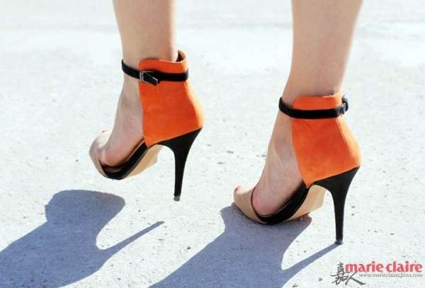 再来一款橘色的高跟鞋踩在脚下也不错哦。