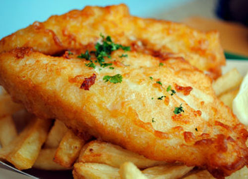 长期以来,炸鱼薯条一直是英国最流行的外卖食品。全境有1.1万多家炸鱼薯条店,这道快餐每年大约能卖出2.55亿份。这一传统美食是将鱼(一般是鳕鱼和黑线鳕)两面裹粉后煎炸,再配上比美式薯条更加粗厚的英式薯条。进餐时的传统配料包括盐、醋、番茄酱或蛋黄酱沙司以及豌豆糊。如果沿着英国海岸旅行,炸鱼薯条堪称经典的海滨晚餐。