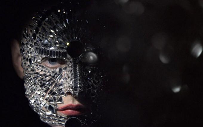 在模特的前额贴上象征第三只眼的镜面,再在四周呈现出孔雀开屏版的视觉效果,华丽的视觉效果颇为奇幻,与之配合的则是香奈儿(Chanel)彩妆打造的红唇。