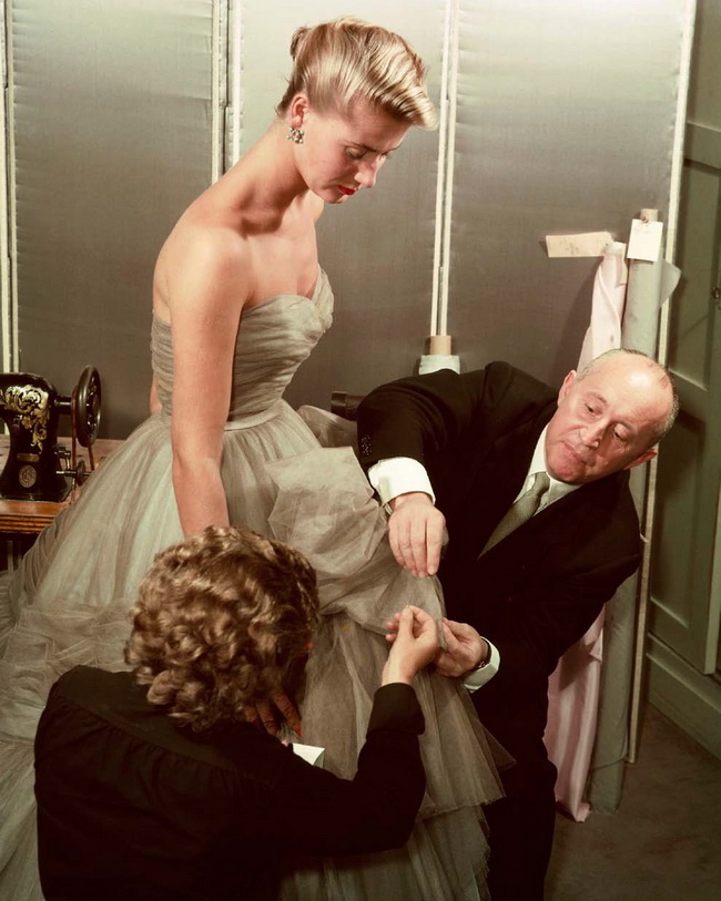 Christian Dior用他的“New Look” 高级时装,打败了Coco Chanel,一举成为笑傲1950年代的时尚巨头。他可以仅为了一条百褶连衣裙就耗费掉20 码布料 摄于1950年