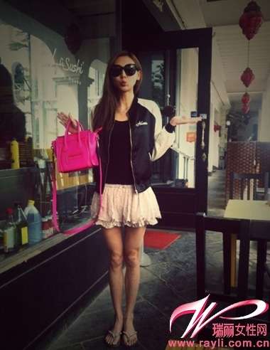 超帅的黑色棒球小外套内搭黑色背心和白色A字迷你裙