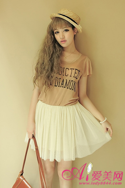 看似是T恤和短裙的搭配,事实是条连衣裙哦!创新设计的拼接概念,将整件YY划分为两部分上半部分是简单的字母T恤,下半部分则是网纱裙两者碰撞带出活力潮调感!独特又俏皮!
