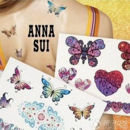 安娜·苏 (ANNA SUI) 推出3款经典图案纹身贴纸,如蔷薇、蝴蝶、心心、花边,贴在手臂、锁骨或脚踝处,必定成为最型格的配件之一。