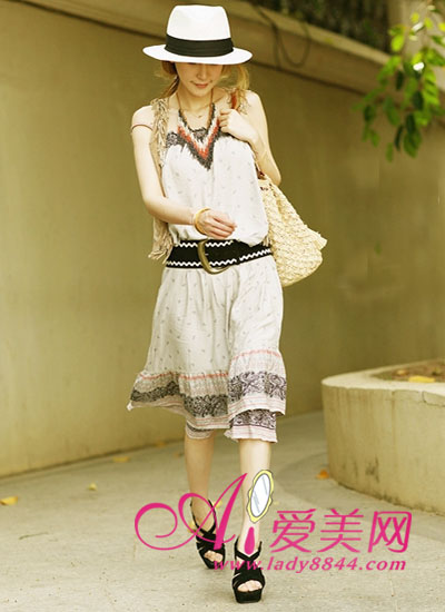 民族碎花吊带连衣裙,参考呛口小辣椒MM的装扮,搭配一条宽腰带,瞬间修饰了身材曲线,打造黄金比例。同时,将裙子分为高腰、中腰、低腰来穿都可以,真让人嗨心!