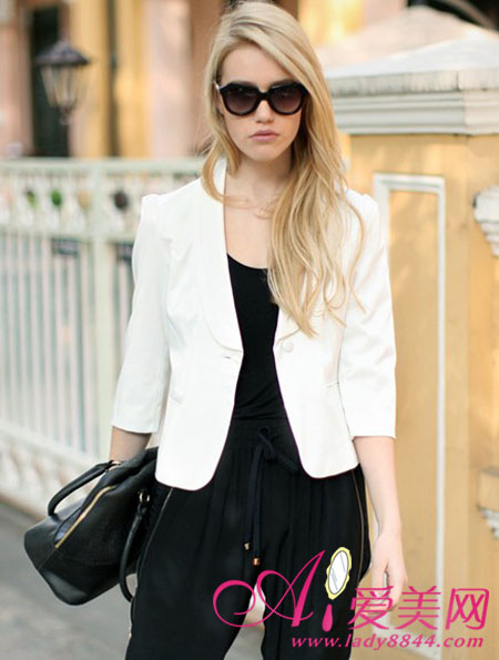 一粒扣青果领泡泡袖白色小西装