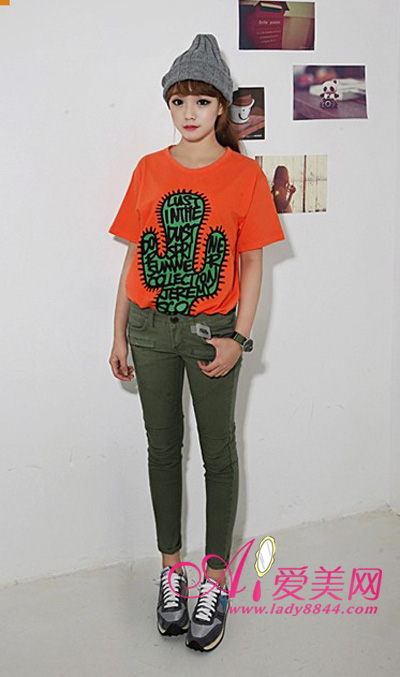 橘色图案T恤