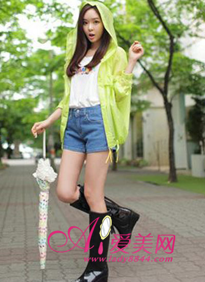 纯纯的黄绿色,让你在这个夏天亮起来。连帽和长袖的设计,夏天下雨的时候也不必害怕,它可是防晒又防水的哦!