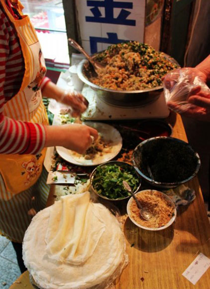 局口街入口处的阿卿薄饼也是一间小的连店面都没有却名气很大的小店,不仅厦门人经常来这里打包回家,不少游客早已从传到网上的各种旅游攻略中得知而慕名前来了。