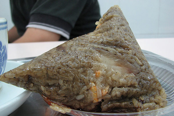 厦门的烧肉粽,特点在于一个“烧”字,也就是非趁热吃不可。加料烧肉粽里有板栗、红烧肉、虾干、香菇、干贝、花生、莲子、卤蛋等等,肉粽的米是糯米,事先炒过了,包好后的粽子要等开水煮沸时才下锅烧,煮好后拨开棕衣,香气扑鼻,粽子色泽红黄闪亮,味道香甜,油润不腻。