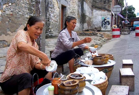 “米乙”是一个造字,由“米”字+“乙”字组成,北海话发音eī(短音)。杯仔米乙是北海的地方特色小吃,因乘放在一个较大的杯子中而得名。杯仔米乙有两种,咸的和甜的。咸的杯仔米乙是白色的,甜的因为加了红糖(北海人称为黄糖)而呈现浅咖啡色。这种用大米磨制而成的小吃,有甜、咸两种口味,是北海人喜爱的早餐食物之一。