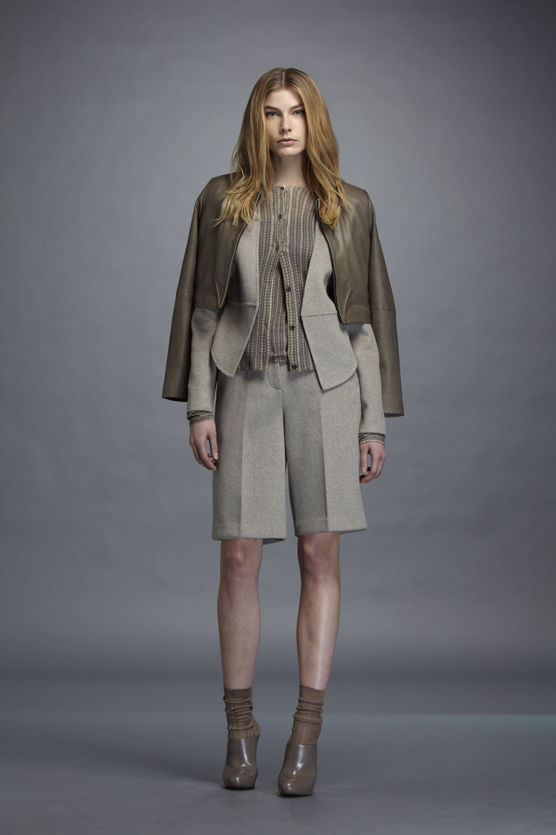 TSE 2012年初秋系列中,Brain利用了梭织技术塑造立体感的强项来处理针织物料,令当中的设计散发着浓厚的建筑美学气息。大衣及裙子均以无缝设计,故可配合不同身形的女士穿着。立体设计的悠闲款式,如今年流行的外穿睡裤款式,配合斗篷穿着,倍添女性妩媚。细味整个系列,可意会到Brian希望为TSE打造一个全新的领域…并留下伏线:皱布及针织的A形连身裙将会是2012年秋冬系列的设计主打。