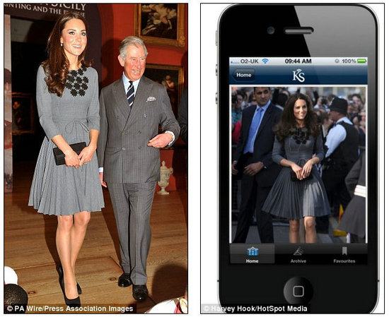 左:Kate王妃订婚时穿的Orla Kiely裙 右:App会告诉在哪可以买到这件裙子