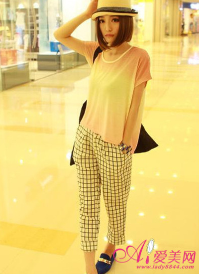 格子也是时尚界的经典元素之一。设计师将其运用在哈伦裤中,加上卷边设计,简洁又不失潮流。白色的主打色成为各种上装的搭配好帮手。