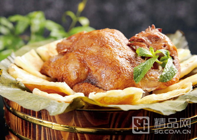 不足一周岁的小鸡以卤水烧煮,通常用一个巨型的桶子锅同时烧煮百只鸡,而得名“桶子鸡”。其源头在明朝中叶,甚至有说法称北宋时期即有。便宜坊的桶子鸡制作方法援引便宜坊秘方,当下重做桶子鸡则侧重在鸡种的选择——便宜坊绿色无公害养殖基地的散养小雏鸡——也因此鸡的肉质鲜嫩滑爽,即使鸡胸肉,嚼来也不觉得干涩。用老卤烧制的桶子鸡,上桌即香气扑鼻,味重却鲜美,服务员将鸡去骨撕成条状,食客可将鸡肉塞入口袋烧饼中吃。由于桶子鸡卤香四溢,且肉质鲜嫩,就着口袋烧饼不会觉得味淡或口感干,而是透过层层烧饼的包裹,彰显鲜香。
