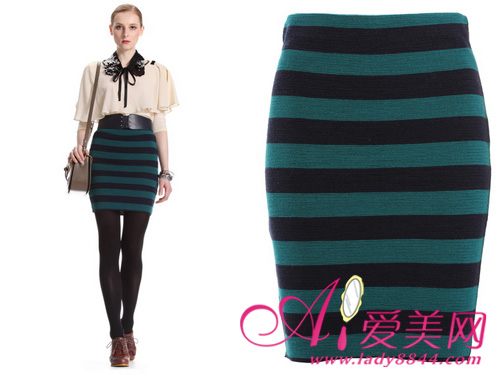 针织呢条纹半裙包臀裙中裙 Ochirly欧时力 ¥369.00
