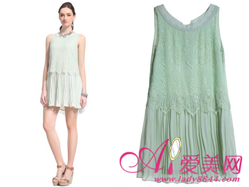 细腻蕾丝+百褶雪纺是亮点,触发浪漫遐想,清新甜美。A型松身设计,充满六十年代复古情调,摩登活力。波纹蕾丝装饰领口,花样效果提升优雅气息。