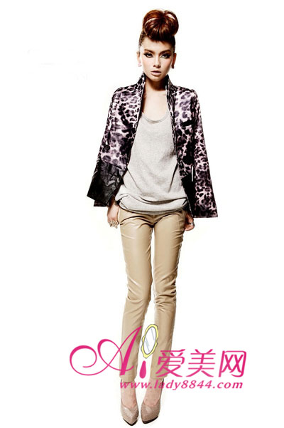 精简大气的粉黑色豹纹拼皮西服,时髦而不浮夸。搭配蕾丝拼皮五分袖裙,凸显嬉皮型格女人味,富古着式的浪漫,上身效果不错!
