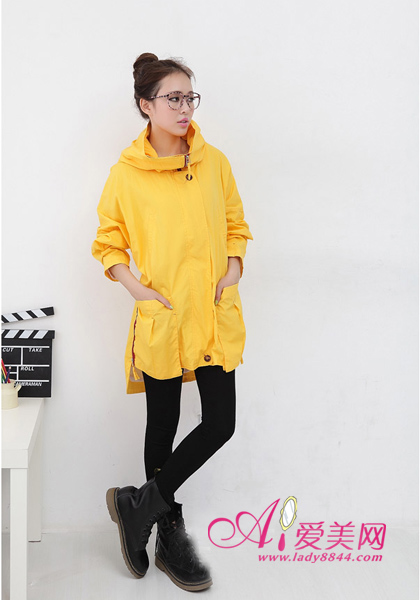 亮丽黄色张扬个性,拉链直身版型,潮味十足,混搭什么都会十分给力,因为风衣本身就是一个绝佳亮点。