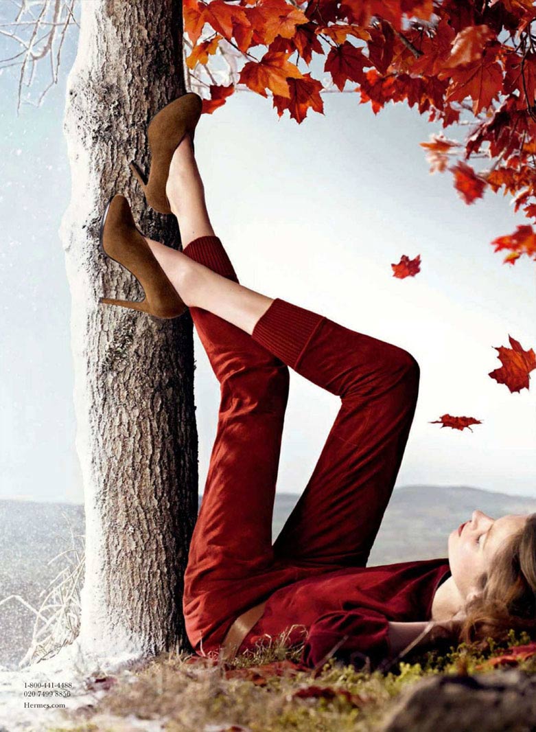 慵懒随性,全身烈焰红装,驼色高跟鞋随我显摆,一树之隔,冬季与我无关。