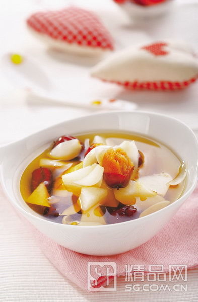 秋季养生需要养阴防燥,清凉爽口的雪梨水果冷汤正是首选。美味之余有润肺去火的功效,气色也会因此变得红润。