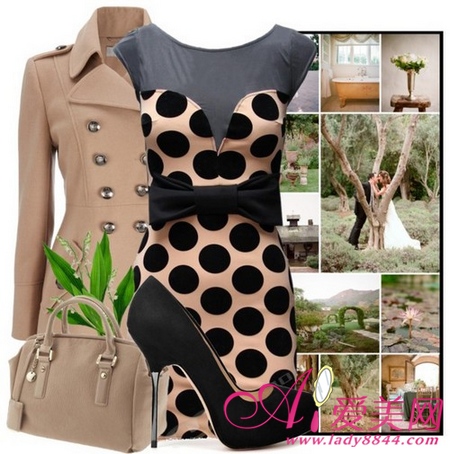 点点拼接连衣裙性感而又甜美,外搭卡其色风衣外套,成熟而又妩媚,性感十足。