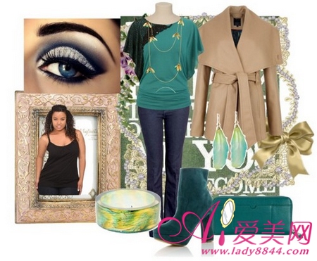 黑色与绿色拼接蝙蝠袖上衣搭配简单牛仔裤,干练十足,外搭卡其色大翻领风衣外套,增添几分女人味。
