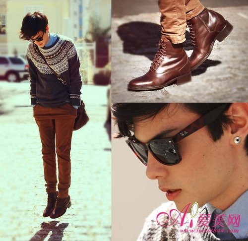 秋季毛衣内搭衬衫的搭配真是帅气逼人,搭配棕色皮革短靴,散发个性魅力。