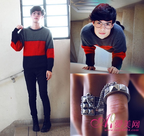 单穿毛衣,纯色容易显单调,拼色毛衣的多色搭配加上牛仔裤,简约不单调,适当搭配饰品添加帅气。