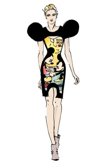 Richard Nicoll设计的“Minnie Mouse Must Haves”系列女装设计草图