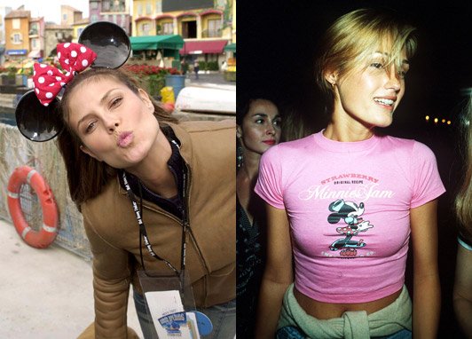 超模Heidi Klum戴着米妮波点蝴蝶结发卡卖萌;英国名模Yasmin Le Bon身穿米妮T-shirt