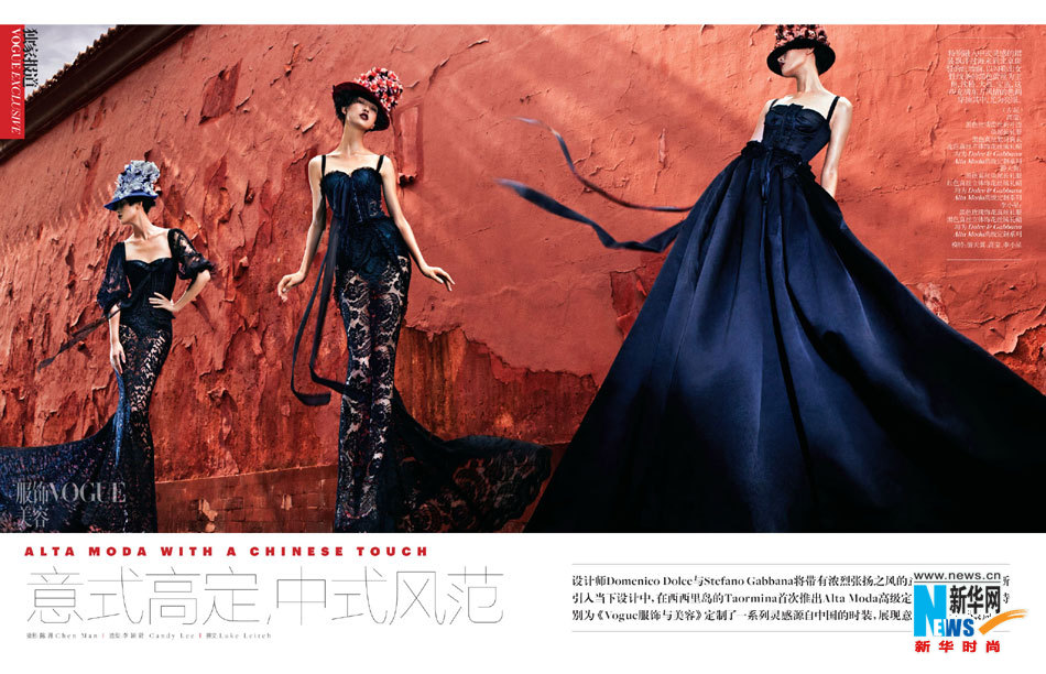 世界顶级时装杂志《VOGUE服饰与美容》十月号独家详解Dolce&Gabbana首个意式高定系列。设计师Domenico Dolce与Stefano Gabbana将带有浓烈张扬之风的意大利高级定制重新引入当下设计中,在西西里岛的Taormina首次推出Alta Moda高级定制系列。设计师还特别为《Vogue服饰与美容》定制了一系列灵感源自中国的时装,展现意式高定的无限风情。