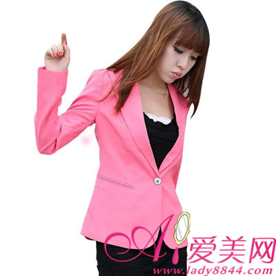 如果你觉得小西装就只能是黑白两色的话,那你就错了。职场上的小西装还可以是甜美的粉红色,搭配的是皮料,增加了小西装的亮度。老板肯定觉得你很醒目的哦。一面是纯净简洁的都市白领,一面是俏皮乖张的时尚达人,纯色蕾丝的小西装演绎平凡女生的双面人生。正面简简单单毫无花哨的装饰,单排扣传统干练,背面却是镂空的蕾丝交织,用蝴蝶结将两面连接。看似不搭的设计,却道破现实的真谛。