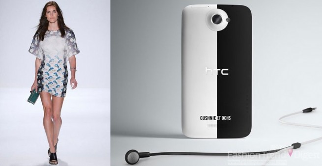 Rebecca Minkoff闭场模特的手中拿着一款Stelle Jungle Audio绿色手包,外观看来和其他手提包无异,其实这是一款可以通过蓝牙连接的随身音响,就像现在的IPHONE一样,即将在明年春季上市。HTC也和Cushine et Ochs共同打造一款黑白双色手机,只可惜只送不卖,并不打算对外销售。
