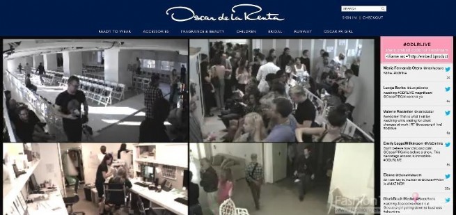 Oscar de la Renta和Marc Jacobs两位设计大师将秀展放上网络,从正式开始前两小时就同步播出,网友可以通过四个镜头观看前置系统如何进行和妆发梳化的忙碌景象,Marc Jacobs的网络时尚秀还特别找来时尚部落客Leandra Medine主持。