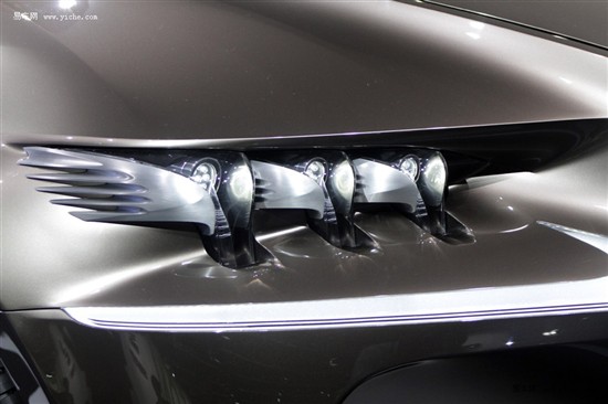 LF-CC 概念车采用雷克萨斯标志性的纺锤形格栅,加上镀铬装饰,立体感很强。车前灯并没有采用传统的整体灯罩结构,而是独特的3支LED大灯组成。独立的L型日间行车灯与保险杠浑然一体。