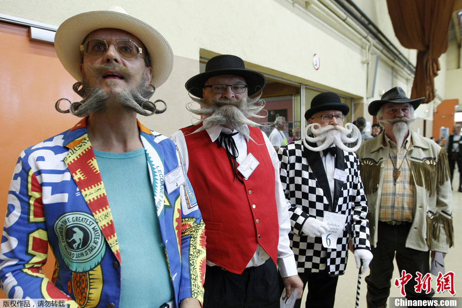 当地时间9月22日,法国维特斯多夫,来自欧洲各国的100多名“美髯公”聚集在此,角逐2012年欧洲胡须锦标赛冠军。参赛者们为自己设计了各种各样的“胡型”。不仅如此,为了衬托胡子,参赛者的装扮也是千奇百怪,不少人都选择扮成了水手或军人。
