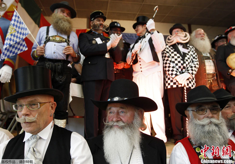 当地时间9月22日,法国维特斯多夫,来自欧洲各国的100多名“美髯公”聚集在此,角逐2012年欧洲胡须锦标赛冠军。参赛者们为自己设计了各种各样的“胡型”。