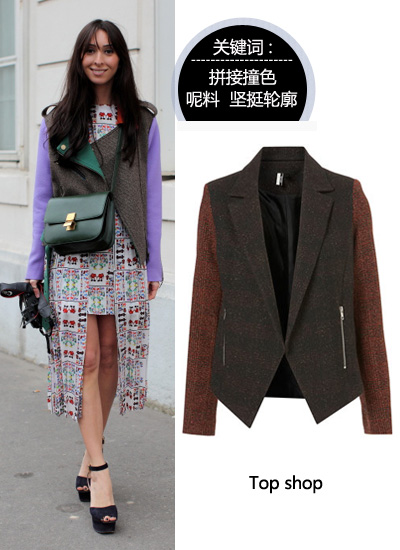 呢子是英伦风格中最被常用的元素之一,它硬朗利落的轮廓效果有效表现优雅,加入今季大热设计——拼接撞色,顿感时尚。