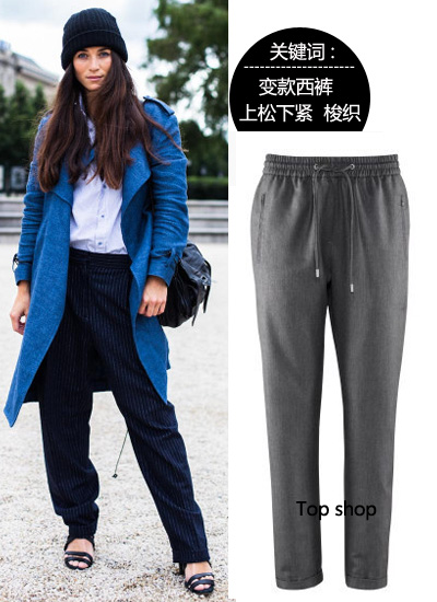 哈伦风格的西裤新潮中透着优雅范儿,想必是时尚的OL的新宠。