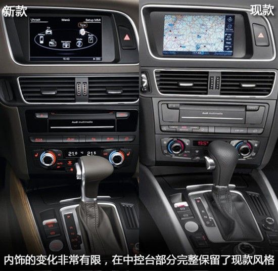 内饰部分的变化体现在了细节部分,部分按键和面板材质进行了小幅的调整,钢琴烤漆元素同样在这里得到了应用。相对来说最明显的升级还是要数新增加的实木装饰元素,这使得Q5以往缺失的豪华感在这款新车上得到了很好的弥补。