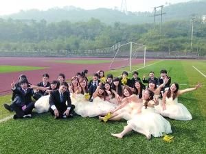 这不是集体婚礼,是大学生们拍毕业照