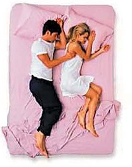 解读:结婚超过5年后,许多夫妻都觉得即使在床上,也需要保留一点点空间,让自己睡得更舒服。通常,他们在睡觉时会保持一定的距离,像汤匙状睡姿那样,但中间却有条缝。情感上的交流就完全靠搭在对方身上的手、膝盖或脚底板了。心理学家和婚姻学专家表示:“这种睡姿在保留一定空间的同时,又不失亲密。同时减少了身体上的接触,性欲相对来说也就没那么容易被激起了。这是种充满爱意的睡姿,但却不诱惑。”
