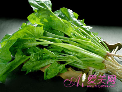 菠菜红色根部含有的铁质,其实比叶子部份还多。也含有维他命A、C,与一般蔬果缺乏的维生素K,有助于预防皮肤、内脏出血,也能增强体力。